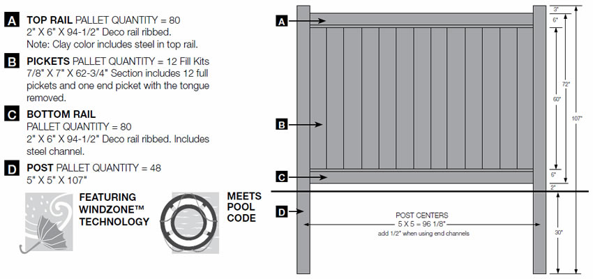 7″ wide Ribbed Pickets provide extra strong “no see through” solid mid section.